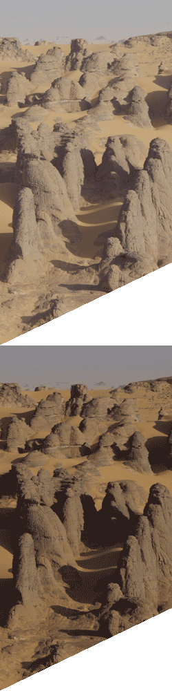 Quelques photos de ce site extraordinaire : ![]() Nous sommes montés sur le plateau pour le coucher de soleil : magnifique ! Notons qu’un autre groupe de touristes campait en face, en bas de la grande dune (un endroit par lequel nous passerons le jour suivant). Pas plus d’un kilomètre ne nous séparait d’eux, mais nous aurions très bien pu ne pas les voir. ![]() La journée suivante a été la plus venteuse du séjour. Le vent s’est levé au beau milieu de la nuit (semble-t-il, au moment où la lune s’est levée) et a persisté pendant une bonne partie de la journée. Résultat, les photos sont un peu laiteuses pendant toute cette journée (sans oublier le risque couru par l’appareil du fait du sable, mais mon nouveau modèle semble assez résistant). Nous avons commencé par explorer le massif de Teguelman Semerdet, traversant cette vallée aux innombrables formations de grès. Des guides français de Terdav, peu soucieux de l’authenticité culturelle, l’ont surnommée la vallée des Mille Bouddhas. Un barbarisme que notre guide Abdoul s’abstenait de commenter… ![]() Nous avons ensuite retraversé la plaine de la veille, dans l’autre sens mais en repassant plus à l’ouest. Le paysage est à ce niveau un peu moins monotone, on y croise notamment quelques barkhânes. Au pied de l’une d’entre elles, nous avons trouvé garées trois voitures parfaitement identiques, tandis qu’un groupe de personnes stationnait en haut de la dune. Nous avons pensé qu’il s’agissait de touristes, mais Abdoul nous a expliqué que c’étaient en réalité des policiers. Que venaient-ils donc faire par ici ? Mystère. Nous sommes ensuite passés par le site de Tagrera : un lieu très touristique, plusieurs groupes venus en 4 × 4 stationnaient là. De plus nous y sommes passés en plein midi par un jour de grand vent, donc les photos ne sont pas très belles. Nous avons dû nous abriter derrière un rocher pour pique-niquer, mais tous les endroits possibles étaient sales. Bref, un endroit à oublier. ![]() ![]() Le rocher en forme de montgolfière, visible sur la première photo, est le plus célèbre du site. Je ne vous dirai pas qui s’est amusé à poser une véritable montgolfière à côté : je crois que j’ai suffisamment parlé de cet énergumène sur ces pages. Voici le camp d’Éguédé Ouagrin et son rocher en forme d’éléphant. J’ai pour ma part placé mon matelas sur un rocher, entre les deux « oreilles d’âne ». ![]() ![]() Le caillou à droite, on se demande quand même comment il tient ! Dernier jour de trek : notre guide Abdoul nous avait promis pour la matinée une animation particulière : le chant des dunes (on peut écouter ici). En dévalant tous ensemble une dune, le roulement des grains de sable produit (paraît-il) un son particulier. Problème : cela ne marche plus si un autre groupe de touristes a eu la même idée dans les jours qui ont précédé. Or des touristes dans ce secteur, il y en avait ! (Abdoul nous avait prévenus, d’ailleurs). Bref, il faudra revenir. Cela étant, le secteur où se trouve ladite dune est magnifique (même si nous l’avons parcouru en plein midi). ![]() ![]()
