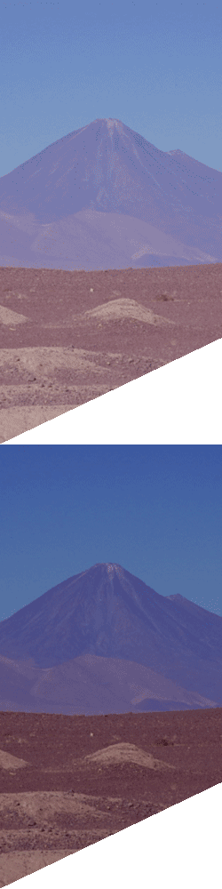 Cette deuxième photo de Santiago, a été prise depuis la colline de Santa Lucia. Cette petite colline, placée au cœur de la ville, est aménagée en jardin public. Plus tard dans l’après-midi, nous avons également effectué (à pied), l’ascension du Cerro San Cristóbal, véritable montagne de 860 m d’altitude située en pleine ville. ![]() Le lendemain, nous avons pris l’avion jusqu’à Calama dans le désert d’Atacama. Calama est une ville minière sans intérêt. Ces premières photos ont été prises après quelques kilomètres de route dans le désert. Rappelons que le désert d’Atacama est un désert d’altitude (nous sommes à environ 3000 mètres ici), et que c’est aussi l’un des endroits les plus arides du monde. Dans certains lieux, aucune pluie n’a été enregistrée depuis la conquête espagnole ! Le désert est bordé par une suite de volcans placés sur la ligne de rupture tectonique, et avoisinant ou dépassant les 6000 mètres d’altitude. Climat oblige, on peut les apercevoir à plus de 150 km de distance ! La vue porte jusqu’au volcan Ojos del Salado (6879 m), point culminant du Chili, plus haut volcan du monde et second sommet d’Amérique du sud. Sur cette photo, on peut voir le volcan Licancábur (5916 m), dont la silhouette nous accompagnera pendant une bonne partie du voyage et dont nous ferons l’ascension à la fin. ![]() Nous avons
