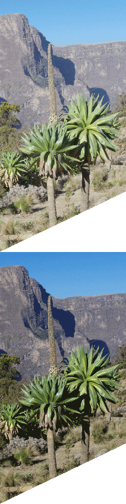 Le massif du Simien (ስሜን), en partie occupé par le parc national inscrit à l’Unesco, est un vaste plateau s’étageant entre 2 200 et 4 500 m (au mont Ras Dashan, 4 550 m (ራስ ዳሸን), le point culminant de l’Éthiopie). Ce plateau est bordé au nord (et semble-t-il à l’ouest) par une gigantesque paroi rocheuse de soixante kilomètres de long (pouvant par endroits atteindre plusieurs centaines de mètres de hauteur). C’est au-dessus de cette paroi que va s’effectuer l’essentiel de notre trek des prochains jours. Géologiquement, ce plateau est de nature volcanique, même si tous les volcans sont éteints depuis des millions d’années. C’est aussi l’un des massifs montagneux les plus importants d’Afrique. Après le déjeuner, nous avons, avant de repartir, chargé dans l’autobus plusieurs personnes nécessaires à la logistique de notre trek : un guide local, une équipe de trois cuisiniers (incluant ici aussi une femme, mais moins rayonnante que celle de Guéralta et la tête toujours couverte d’une foulard noir, me laissant à penser qu’il s’agit d’une musulmane). Et puis, deux rangers (gardes) armés qui allaient nous suivre partout, notamment pendant la randonnée, montant par ailleurs la garde du camp la nuit. Ces rangers étaient imposés par l’administration du parc, mais je n’ai pas véritablement compris leur justification exacte. Étaient-il vraiment là pour nous protéger (et si oui, contre quoi ? des bêtes sauvages, des voleurs de grand chemin, des terroristes ?) ; ou alors, pour nous empêcher de faire de travers. Ou enfin, simplement pour offrir quelques emplois aux hommes des environs. Peut-être un peu des trois. La route a continué à s’élever peu à peu, de nouveau à l’intérieur de la limite du parc, et de nouveau non asphaltée. Nous nous sommes peu à peu approchés de la très spectaculaire paroi limitant au nord le massif (paroi que nous avons de fait gravie en fin de matinée, à un endroit où elle est un peu moins raide qu’ailleurs). Brusquement, sont apparus sur le bord de la route un grand nombre de babouins gélada, ce qui a justifié un arrêt immédiat (même si nous aurions d’autres occasions d’en voir par la suite). ![]() ![]() Les singes, un troupeau d’une bonne centaine d’individus, se sont laissé approcher à seulement quelques mètres (et même encercler par notre groupe), ne s’éloignant de nous que très lentement. Il y a des vieux mâles, des femelles qui portent des petits… En fait, ces animaux vivent en harem, un mâle dominant avec plusieurs femelles et des petits. On les observe en général à proximité de la paroi, ils se nourrissent sur le plateau dans la journée puis descendent dans la paroi à la nuit tombée (comme nous aurons l’occasion de nous en rendre compte le jour suivant). ![]() Notre bus nous a déposés quelques kilomètres avant le camp du soir, pour nous permettre d’entamer dès à présent la randonnée, pendant que l’équipe installait le camp. Nous avons progressé le long de la falaise, par moments sur le versant exposé mais (pour ce soir en tout cas) ce ne sera jamais vertigineux. Nous ne nous en sommes pas rendus compte sur le moment, mais cette marche nous a permis de couper un très long détour effectué par la route. ![]() La vue sur la paroi et sur les reliefs inférieurs est souvent spectaculaire (même si le ciel était ce jour là un peu voilé). Le paysage fait selon certains penser à la Réunion, mais c’est ici beaucoup plus sec ; en ce qui me concerne la comparaison qui me vient plus facilement à l’esprit, ce sont les étages intermédiaires du Kilimandjaro ; notamment les alentours du camp de Barranco. On trouve néanmoins quelques petites forêt de bruyères arborescentes sur le versant donnant sur la falaise, nous donnant de rares occasions de marcher en sous-bois. ![]() Le camp (Sankaber) était situé à un endroit particulier du plateau où celui-ci se rétrécit très fortement, coincé entre la paroi au nord et une vallée très encaissée orientée vers le sud. Comme au Kilimandjaro (selon la norme des parcs d’inspiration anglo-saxonne) les camps sont autorisés uniquement dans des endroits prédéterminés. Il y a quelques bâtiments, notamment des sanitaires et des bâtiments circulaires pour cuisiner (mais pas de douche). Ce premier camp s’appelle Sankaber, il est situé à 3 240 m environ. La première véritable étape de ce trek nous a conduits au camp de Geech, autour de 3 600 m d’altitude. Ce camp est le seul situé à l’écart de la route, d’où la nécessité des mules pour transporter nos bagages. Le début de la marche prolongeait celle entamée la veille : nous avons longé la falaise bordant au nord le plateau, avec toujours des paysages très spectaculaires. ![]() ![]() Ci-dessous les rangers qui nous accompagnaient. ![]() ![]() ![]() ![]() Bientôt, nous nous sommes trouvés face à un ravin infranchissable entaillant profondément le plateau. De l’autre côté, en face de nous donc, le secteur où se trouve le camp du soir, au-dessus du village éponyme et abandonné de Geech (le parc était il y a quelques années encore habité avec plusieurs villages, mais l’Unesco a forcé toute la population a abandonner le lieu, tout en leur finançant des maisons neuves à Debark’. Cette décision semble toutefois contestée, pas tant des habitants concernés qui y on trouvé leur avantage que des ONG). ![]() Le col que franchit la route est l’unique passage permettant de rejoindre Geech et aussi le reste du plateau. Après l’avoir franchi, nous avons fait halte sur un promontoire assez aérien que j’ai moyennement goûté. ![]() ![]() On devine une cascade en bas à droite de la photo : elle est particulièrement haute mais peu spectaculaire pendant la saison sèche. Nous avons ensuite à nouveau rejoint la route, avant de la quitter définitivement et de progresser sur le plateau dans 