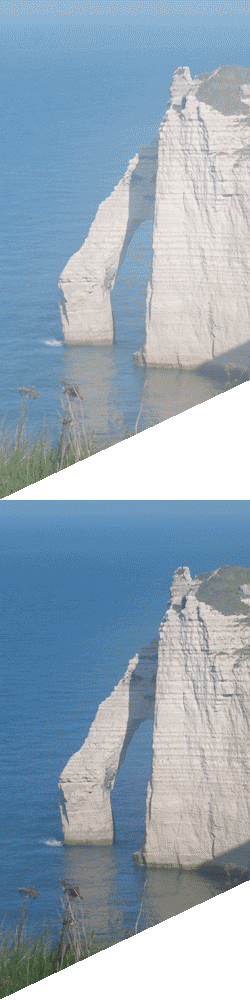 Il y a trois arches dans les falaises d’Étretat. Successivement, la porte d’Amont, d’Aval et la Manneporte.