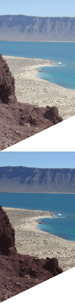 On trouve quelques curiosités géologiques sur le parcours de la randonnée : des restes de tunnels de lave (mais de taille miniature, 30 cm de large !) ou des hornitos (qui sont des cônes volcaniques de dégazage, également de taille miniature). ![]() ![]() Nous sommes maintenant à la lisière de la partie centrale du parc. Des panneaux nous interdisent d’aller plus loin. Au loin sur l’un des cônes volcaniques, on peut apercevoir deux des fameux bus à touristes. ![]() Changement radical d’ambiance maintenant puisqu’après la randonnée nous sommes allés nous baigner au nord-ouest de l’île, sur la plage de Famara. La plage est située à proximité du village éponyme et au pied de la falaise du même nom, longue de 15 km et culminant à 550 m (nous aurons l’occasion d’en reparler). On notera la présence de rouleaux dangereux sur la plage et le drapeau rouge interdisant théoriquement la baignade (apparemment en Espagne il existe un certain laxisme). Je me suis contenté de me tremper en-deçà des rouleaux. ![]() Nous sommes en fin de journée repassés par le village de Teguise. Mais c’est à peine si nous l’avons reconnu. Car les jours qui ne sont pas de marché, le village est quasiment désert : presque aucun commerce d’ouvert, très peu de touristes et aucun habitant dans les rues. (D’ailleurs, y a-t-il des habitants autochtones ? Une question qui avait pour effet d’énerver la guide et à laquelle je n’ai pas pu obtenir de réponse).