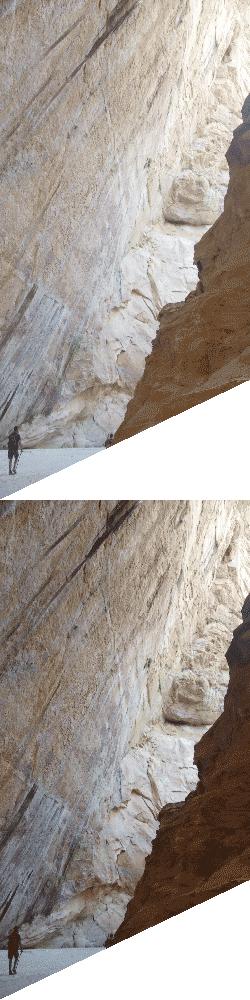 Ensuite c’est un terrain assez monotone pendant une heure ou deux. ![]() ![]() ![]() ![]() En milieu de matinée, le relief s’accentue progressivement avant que nous rejoignons un premier cañon. Descente facile pour cette première fois, puis franchissement de rivière, c’est de nouveau la Manampanda. ![]() ![]() Nous avons alors de nouveau enfilé les chaussures d’eau, et ce pour plusieurs heures. En commençant par une double traversée de la Manampanda que nous devions ensuite définitivement quitter. ![]() Nous avons ensuite entamé la remontée d’un cañon de plus en plus étroit. Progression dans l’eau, et à contre-courant comme cela a pratiquement été toujours le cas au cours de ce trek. Je pense qu’il s’agit d’un choix délibéré des organisateurs même si les explications du guide à ce sujet sont restées confuses (peut-être en lien avec la possible — quoique rare — présence de crocodiles dévalant le courant ?) ![]() Parfois le cañon s’élargit pour laisser place à la forêt primaire. Des passages qui offrent, régulièrement, l’occasion d’apercevoir furtivement des lémuriens à travers les branches. Le guide et les pisteurs qui ont l’œil nous les signalent systématiquement, on peut donc en voir fréquemment, même quand on ne progresse pas en tête du groupe. Par contre pour la photo c’est un peu au petit bonheur la chance. Voici mon premier essai en la matière (j’ai recadré la photo bien que ce ne soit pas très net ; la photo originelle au 250 mm est également présentée). Pour rappel, les lémuriens sont des primates endémiques de l’île de Madagascar. ![]() C’est dans cette zone boisée que nous avons ensuite pique-niqué. Un pique-nique de luxe auquel nous ne nous attendions pas dans un endroit aussi isolé. Car l’un des porteurs nous avait accompagnés pour toute la journée, transportant jusqu’à ce lieu non seulement une abondante salade de pâtes, mais aussi de l’eau potable. (Nous disposions pourtant de pastilles rendant possible le ravitaillement dans l’eau de la rivière). Nous aurons un porteur pour la plupart des pique-niques du voyage (tandis que les autres porteurs qui transportent nos bagages suivent le plus souvent un itinéraire plus facile voire plus court). Suite de la progression dans le cañon dont l’eau se raréfie progressivement, rendant à un moment possible (et même nécessaire) le changement de chaussures. Et pour terminer un petit passage d’escalade que je n’ai pas franchement goûté (sachant qu’il y aura bien pire au cours du voyage). ![]() ![]() Une fois atteint le plateau, nous avons encore marché pendant une heure et demie sous une magnifique lumière déjà crépusculaire (on rappelle que juillet à Madagascar c’est l’hiver). ![]() ![]() ![]() ![]() De spectaculaires cañon étaient visibles à l’horizon ; mais nous ne nous en sommes pas approchés, cette zone n’étant paraît-il pas praticable. ![]() Descente finalement un peu abrupte vers une large vallée : j’ai noté que c’était le seul passage alentour rendant possible le franchissement de la falaise. Le camp était situé sur le sable dans un endroit magnifique ; la (relative) grasse matinée à laquelle nous aurions droit le lendemain nous permettrait d’en profiter un petit peu. ![]() La journée du lendemain a été plus courte et plus facile. On commence par quelques photos du site extraordinaire dans lequel nous avions passé la nuit. ![]() Nous avons alors entamé la remontée d’une étroite gorge que j’ai beaucoup aimée, c’était assurément l’une des plus belles de tout ce voyage. ![]() ![]() Cette gorge, un peu plus large à sa base que plus en hauteur, présentait un profil caractéristique de trou de serrure inversé. Je ne sais quelle peut être l’explication géologique. La couleur orangée de la roche donnait en outre au lieu un éclairage absolument unique. ![]() (À un moment nos pisteurs ont détecté une trace de crocodile. Le saurien aurait quitté une vasque d’eau située dans un cañon latéral, pour remonter la rivière et s’établir dans une autre vasque située en amont. De l’animal proprement dit nous ne verrons rien.)