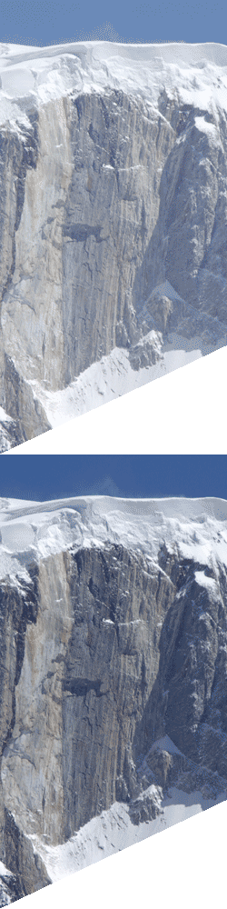 ![]() Le pic de Marbre photographié par Martine Grive depuis l'arête du Karlytau, le 21 août 2009 ![]() Avalanche sur le glacier Iniltchek, le 22 août 2009 (photo : Damien Broussole) De gauche à droite : le pic de Marbre (6145 m) ; un sommet de 6497 m situé en territoire