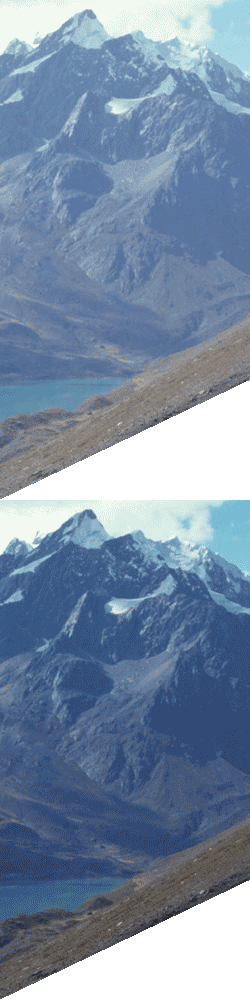 pénitents, un peu comme au glacier du Baltoro). ![]() Continuant de marcher sur les rives du lac, nous avons eu la surprise d’y observer des flamants roses. C’est assez étonnant de trouver à ces hautes altitudes et dans ce froid, des animaux que nous associerions d’emblée à la chaleur camarguaise. Mais il s’agit pourtant bien d’oiseaux très répandus dans les hauts lacs des Andes, je les ai par exemple retrouvés en Bolivie. Après le pique-nique, nous avons essuyé un bel orage de grêle. Le paysage qui suit, situé sur les rives de la laguna Ccasccana (non visible), a été photographié juste après cet orage.