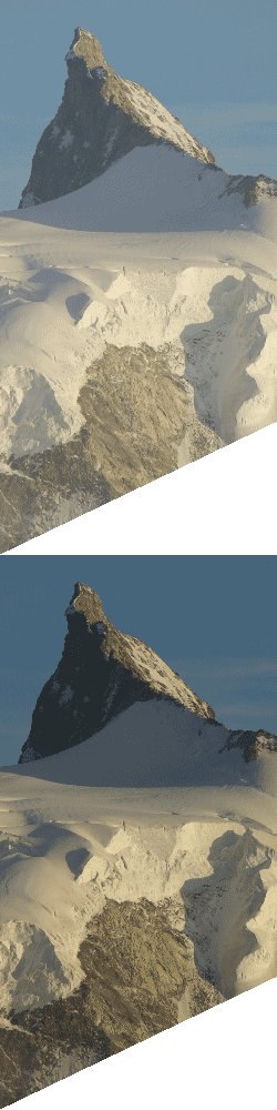 Une photo prise de l’ultime ressaut avant le sommet, le seul passage un peu plus raide. L’autre photo montre l’arête du Weisshorn (voisin du Bishorn). Les ascensionnistes de ce sommet partent eux aussi de Tracuit et démarrent donc par la montée au Bishorn, partant à 1 h du matin après avoir bien entendu réveillé tout le dortoir…